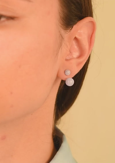 Vores Arch øreringe blonde agat omkranser øret med et sæt lyseblå blonde agat - en stor og en lille bundet sammen af en gylden bue.