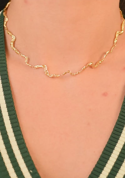 Elegance, der gør indtryk. Nightfall lægger sig tæt op ad halsen i en kæde af sytten rå, organiske led inspireret af skyer over nattehimmelen.