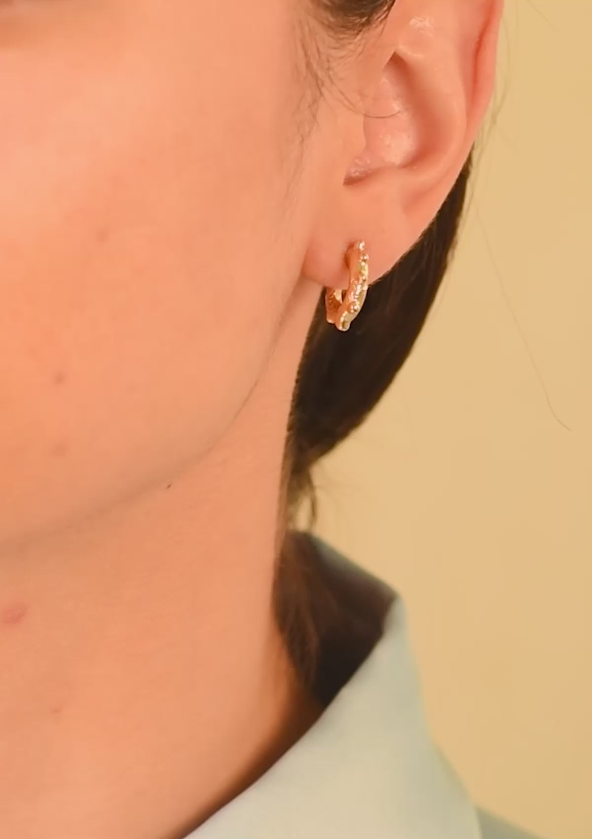 En helt igennem rå mini hoop, der med sin medtagne, boblende struktur får en skulpturel kvalitet - brug den for sig selv eller kombiner den med dine øvrige ørefavoritter.